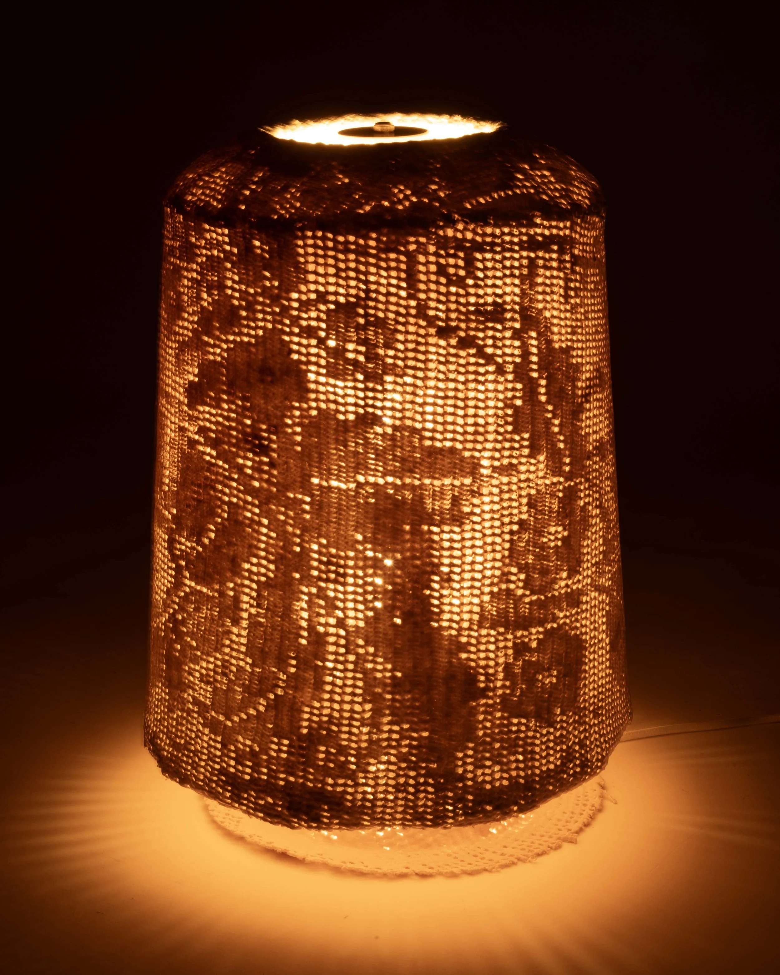 Through this process, the work recontextualizes lace, elevating it from surface decoration to structural form. What is typically understood as fragile and ornamental is instead made durable and load-bearing, holding tension between