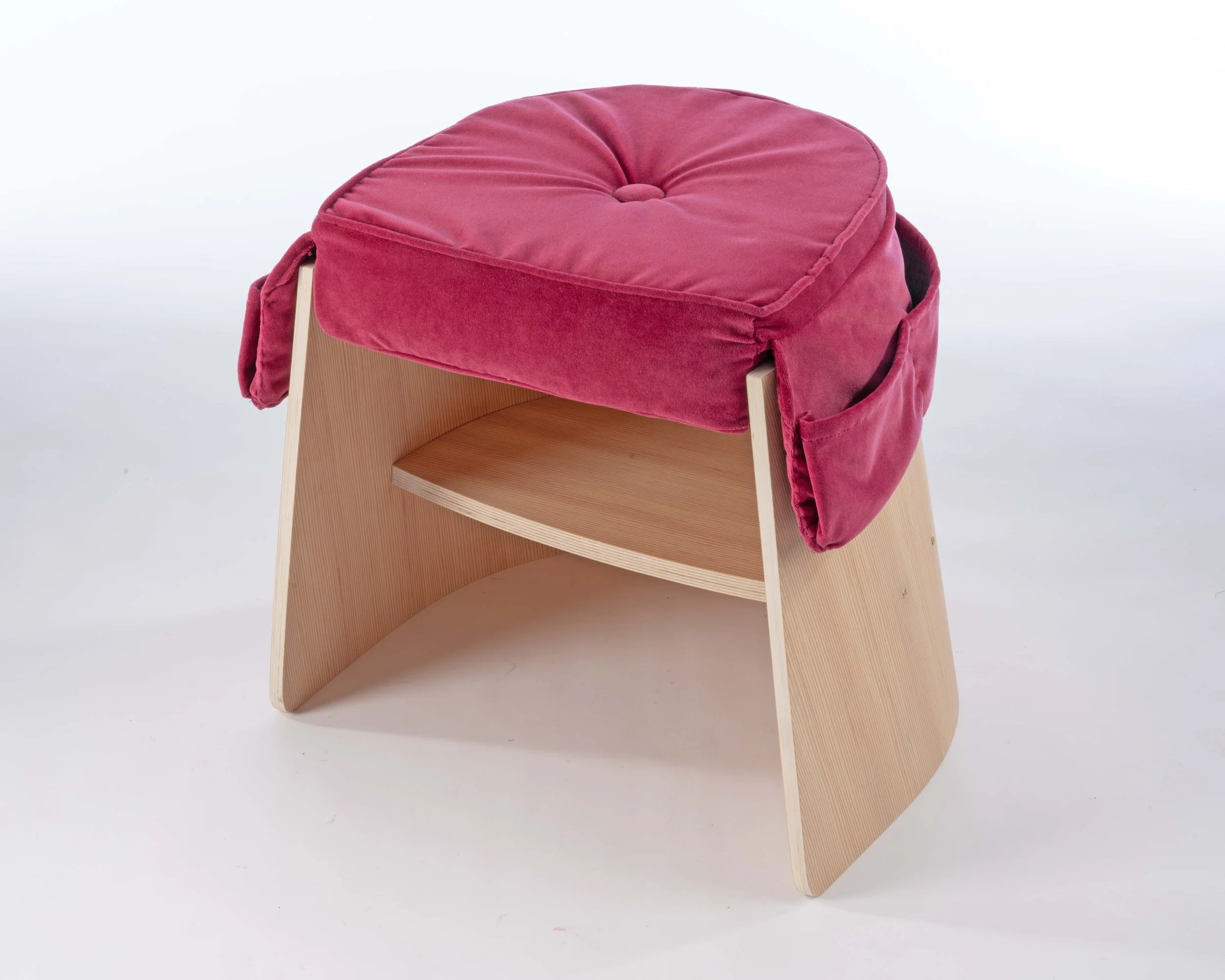 Designed for someone with limited space and an abundance of tools, the Maclaine Stool responds to the realities of working within constraint. The form integrates a series of toolkit-like pockets, allowing the object to function not only as seating, but as a site of storage and accessibility.